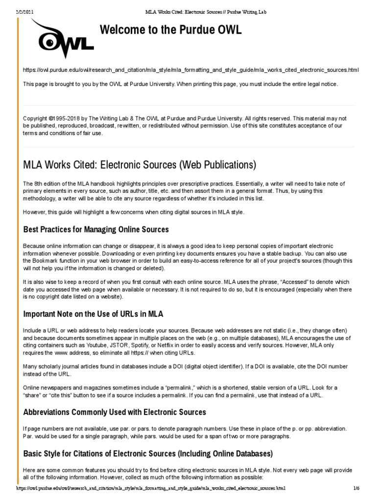 Mla Works Cited Electronic Sources Purdue Writing Lab Pdf Digital Object Identifier World Wide Web